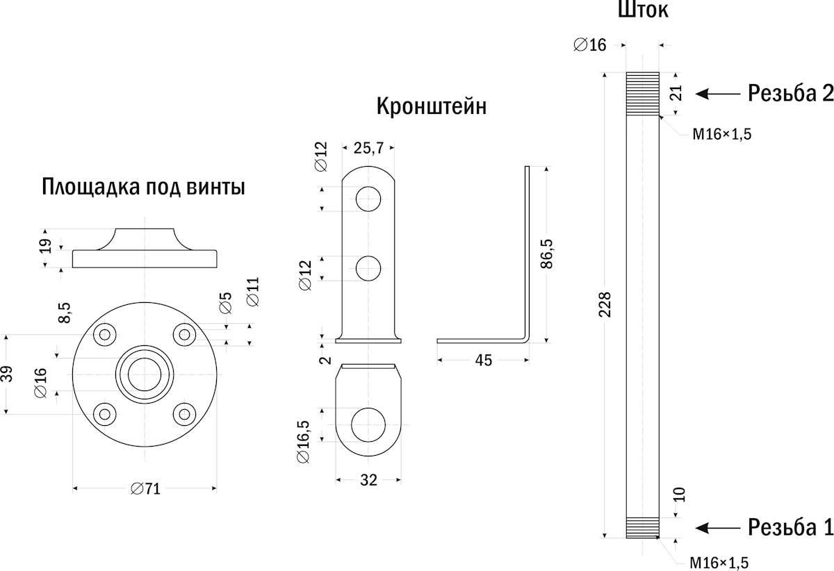 | Кронштейн, площадка под винты или универсальное крепление | ||||