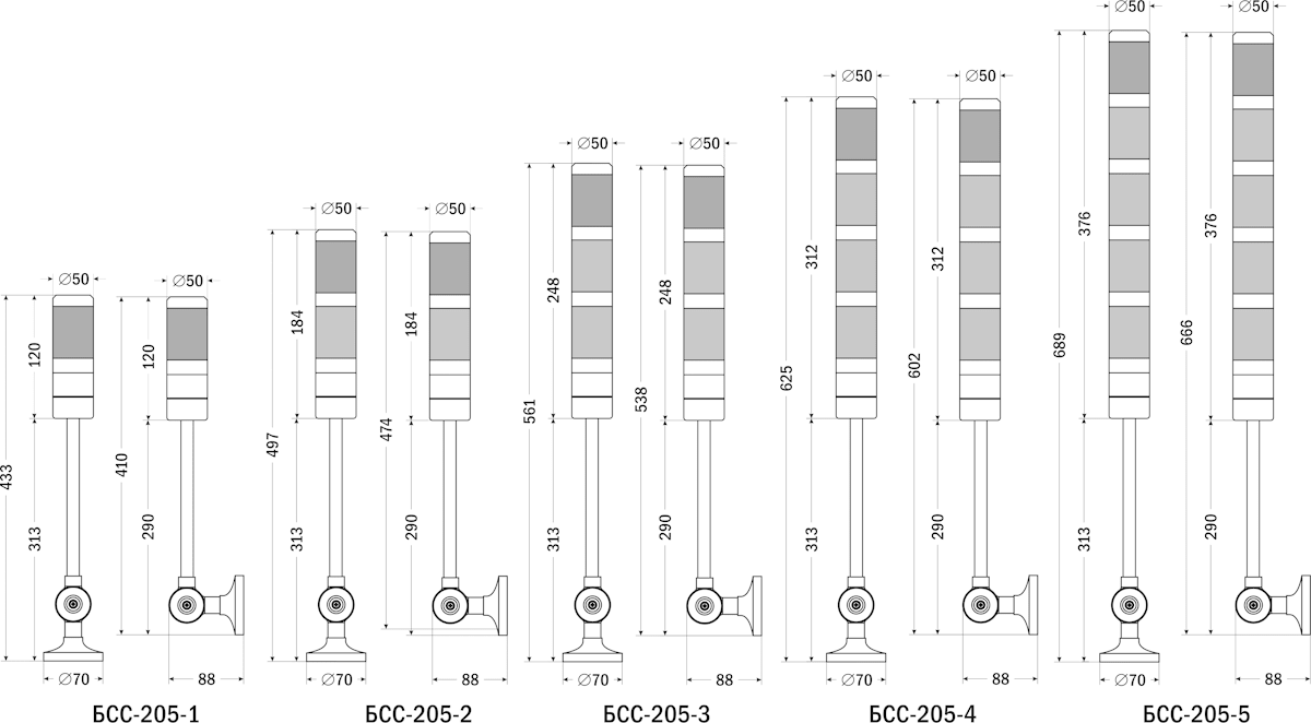*Высота дана для моделей без сирены, модели с сиреной выше на 61 мм