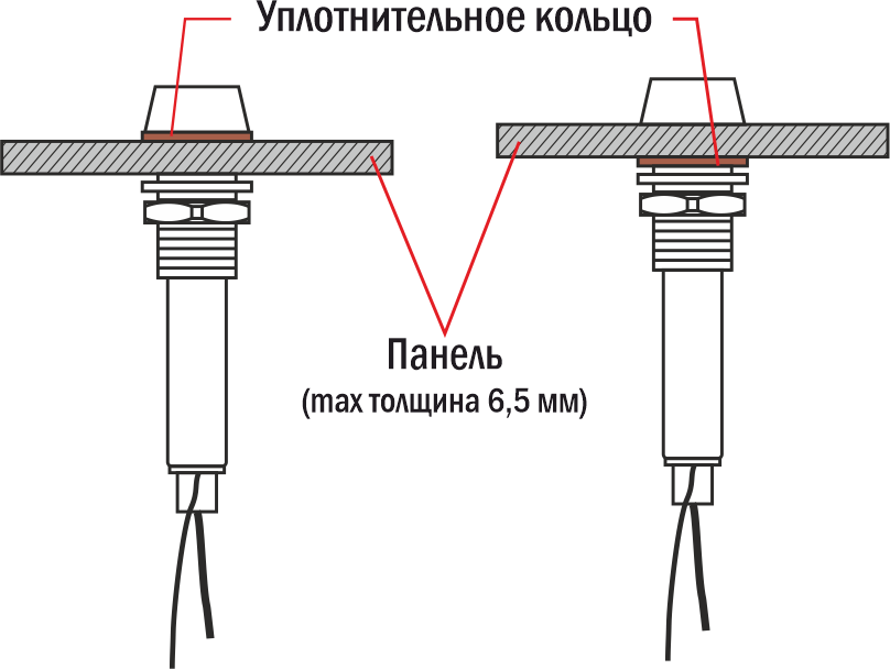 - Монтаж в плоские панели толщиной до 6,5 мм, фиксация стопорной гайкой