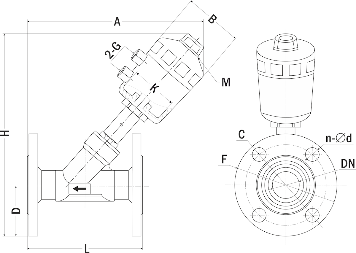 X – присоединение: F – фланцевое.