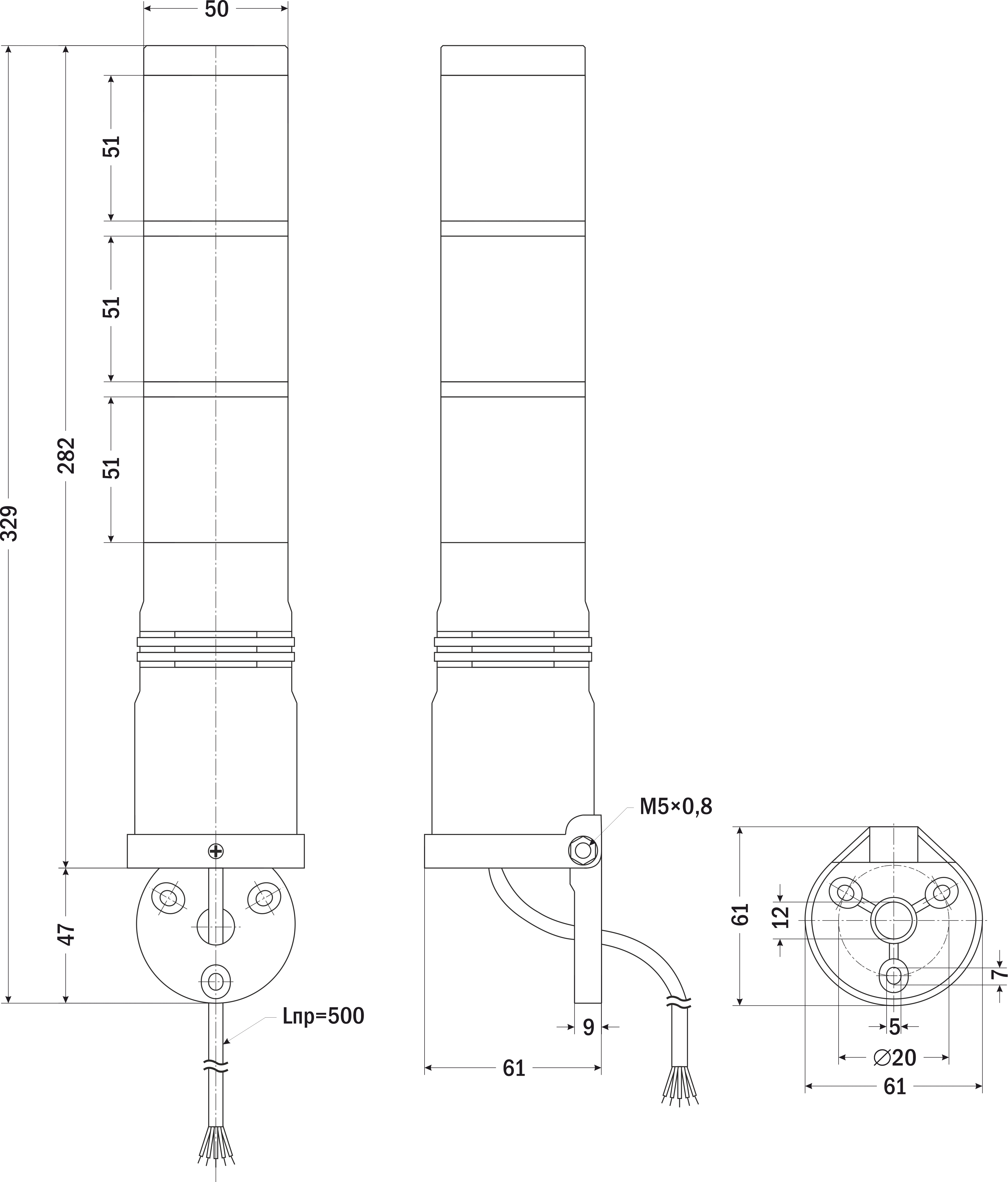 | Габаритные размеры | 329×61×61 мм |