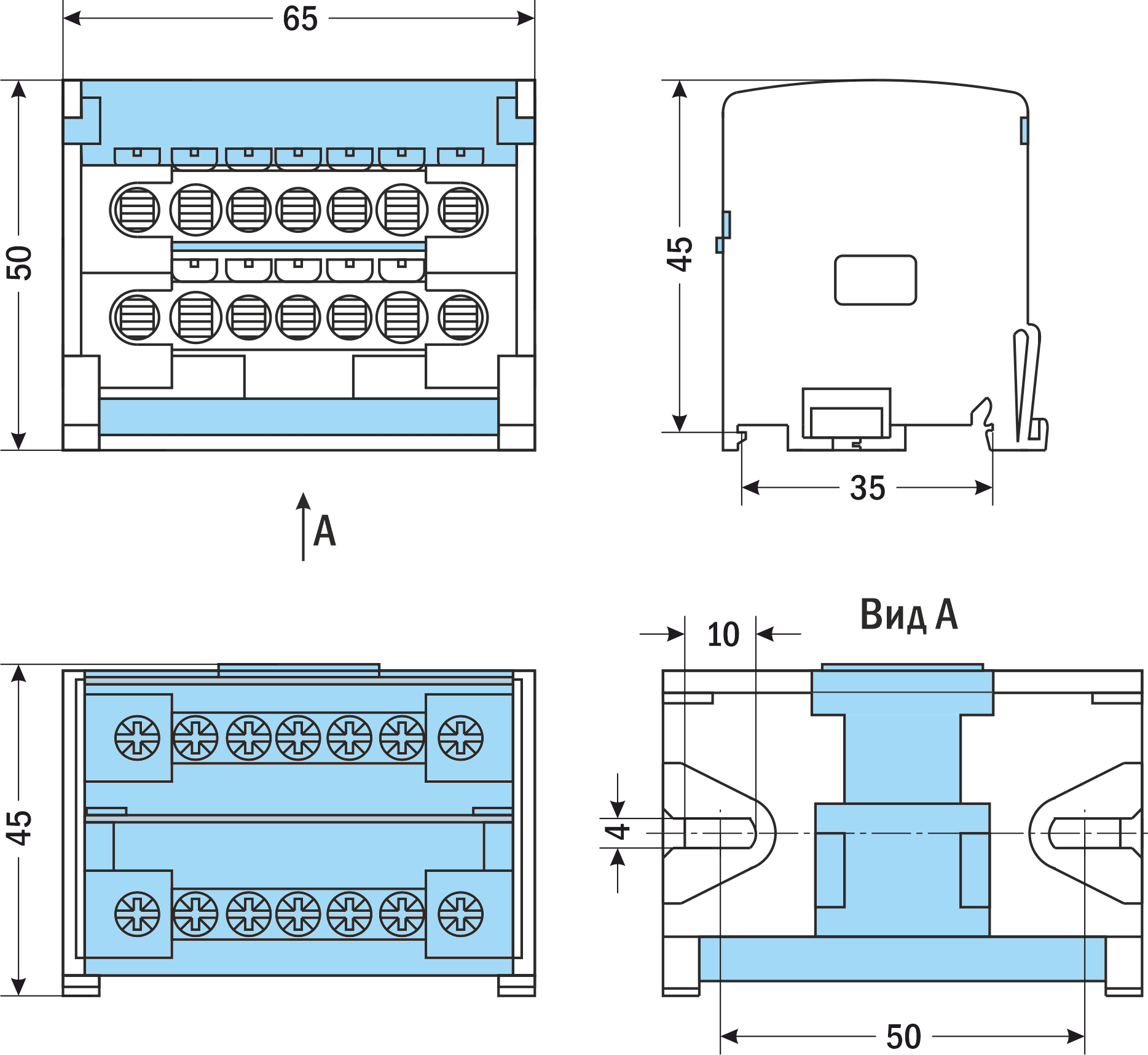 | Высота над DIN-рейкой | 45 мм | |||||||