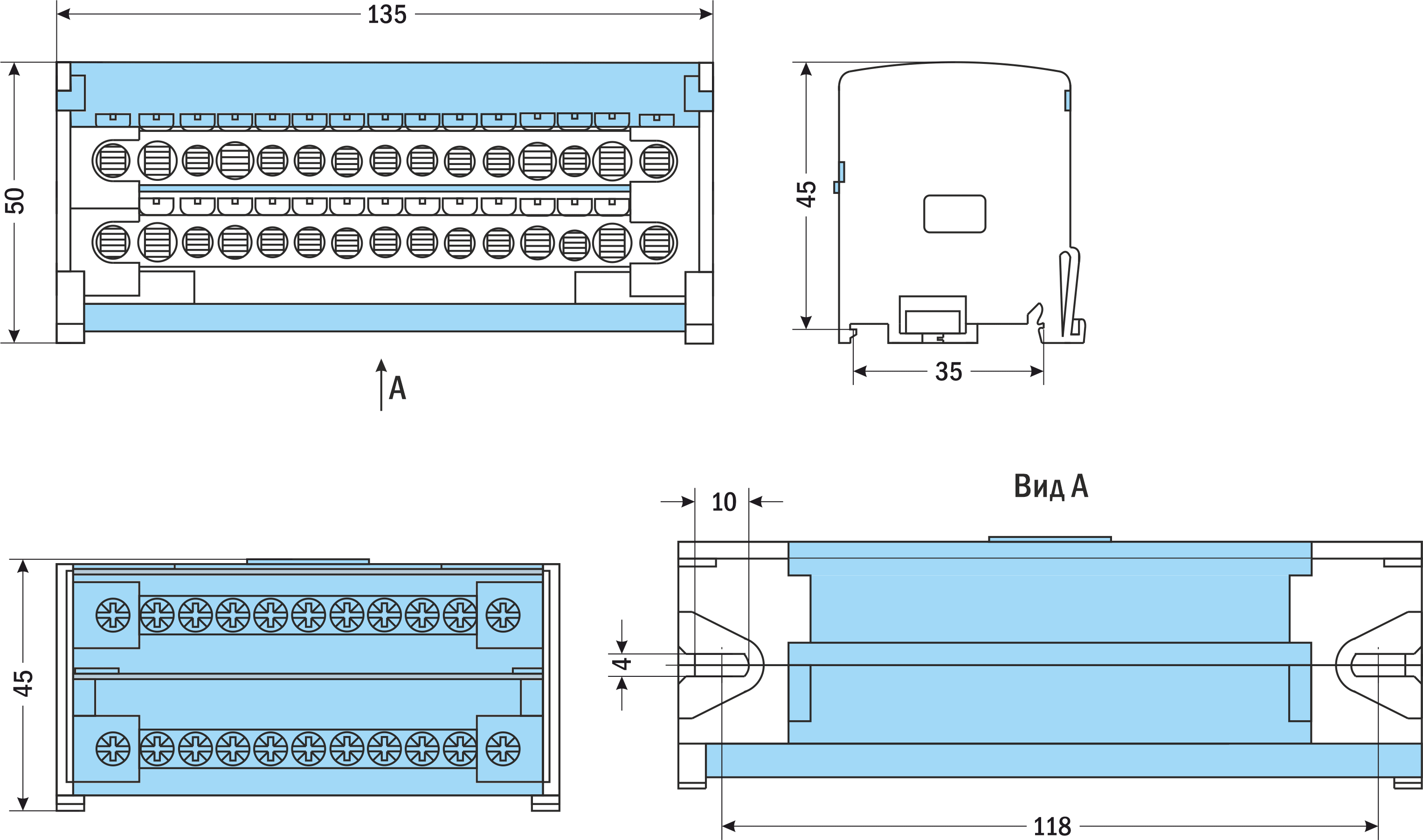 | Габаритные размеры | 45×65×50 мм | 45×100×50 мм | 45×135×50 мм | |||||