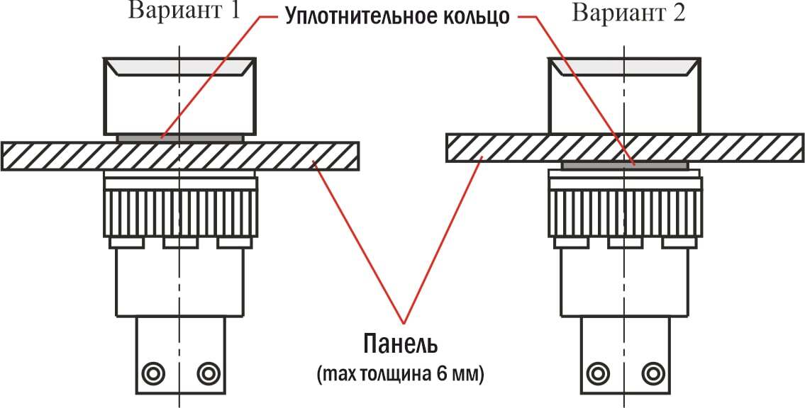 - Монтаж в плоские панели толщиной до 6 мм, фиксация стопорной гайкой