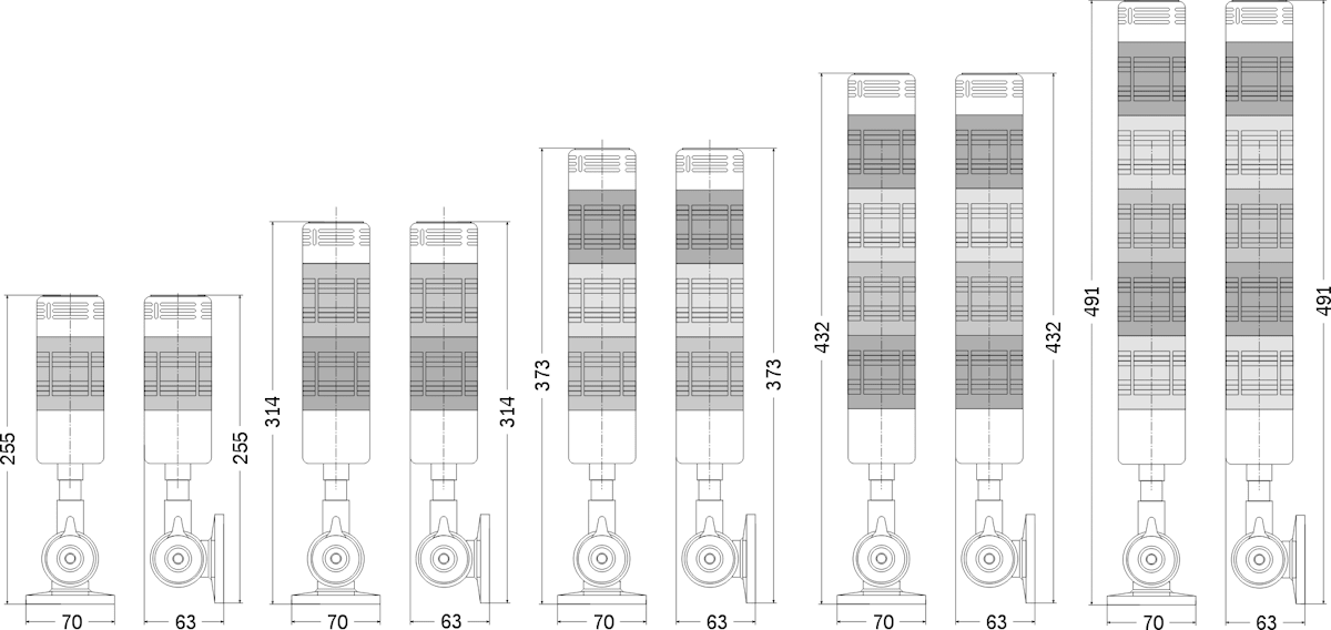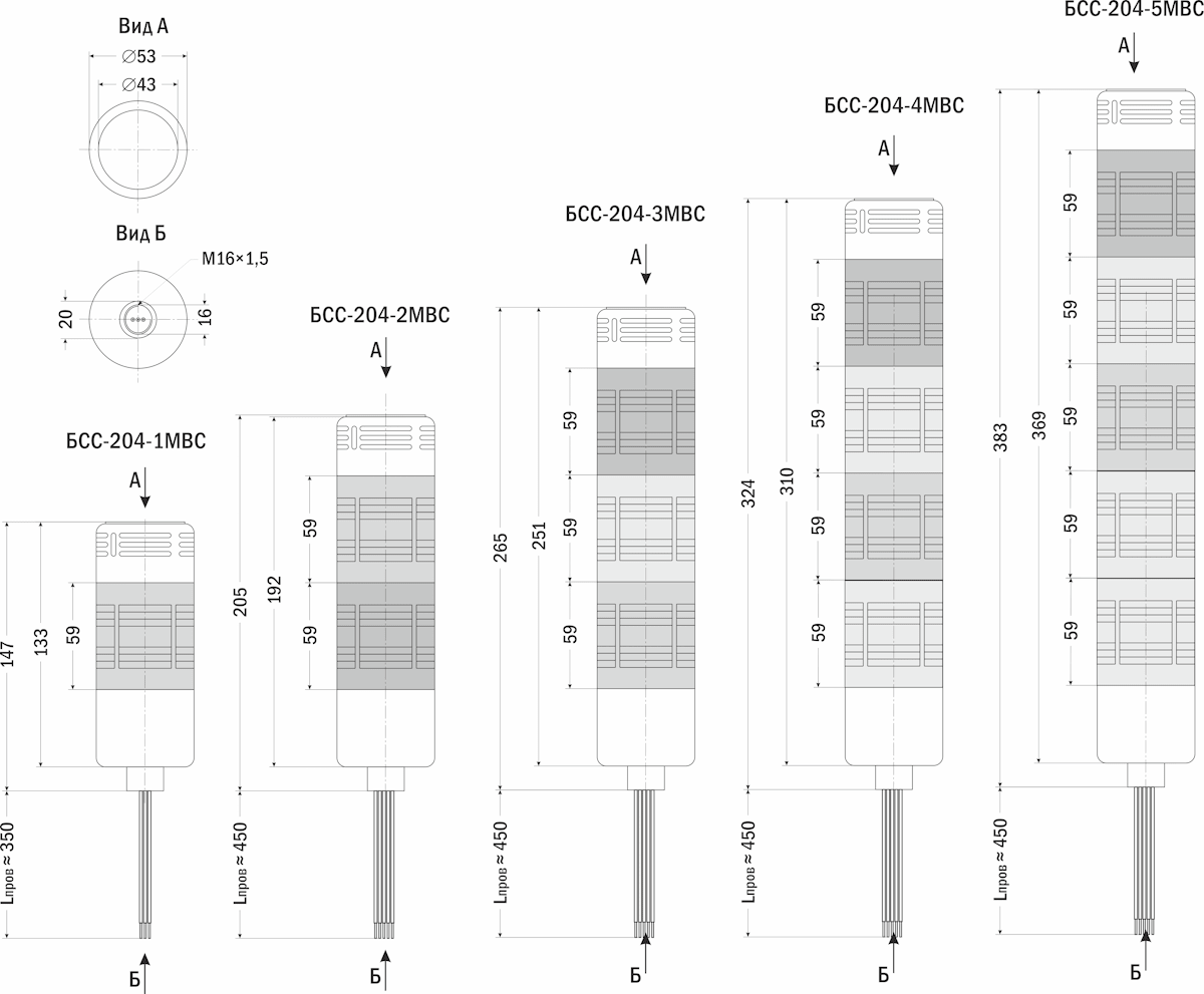 | Высота в сборе с универсальным креплением | 255 мм ±5% | 314 мм ±5% | 373 мм ±5% | 432 мм ±5% | 491 мм ±5% |